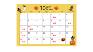 10月のお休みは以下の通りです。